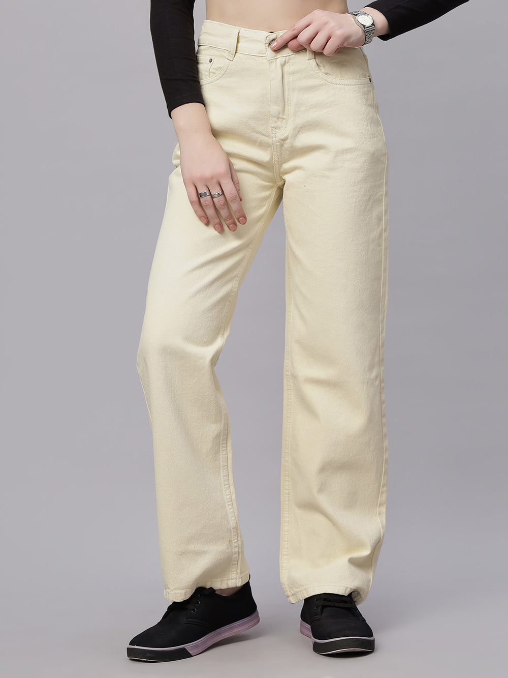 | Rise | Mid-rise waist with zip fly and button closure |